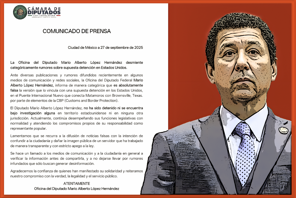 El comunicado de prensa del diputado Mario López Hernández sobre su supuesta “detención” por autoridades estadounidenses está plagado de eufemismos y medias verdades que contradicen la evidencia pública, por lo que merece ser confrontado frase por frase, con contundencia y sin concesiones.
